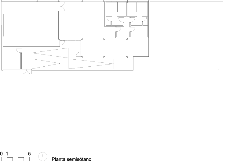 Durante el transcurso de la obra se produjeron modificaciones en el programa que obligaron a una readaptación completa del edificio. Se mantiene el uso principal pero se hace necesaria una redistribución de espacios en la planta alta con la que, de alguna forma se suprimen las zonas que podrían considerarse de pública concurrencia, enfatizando el carácter docente-asistencial del centro. En proyecto se trataba de un centro de formación dirigido a personas con discapacidad y centrado en temas de medioambiente pero una vez en obra, teniendo en cuenta el perfil de usuario al que va dirigido, con personas que precisan una formación que le obliga a permanecer a diario en el centro durante varias horas, se consideró que era necesario prescindir de los espacios más abiertos, (exposición, venta, etc…) y habilitar zonas con un carácter más asistencial en planta alta: sala de curas, sala de rehabilitación, un área acotada de comedor, que funcionará con servicio de “catering”, y una modificación en los aseos para hacerlos todos adaptados e incluir una ducha. En planta semisótano, en la zona del almacén original, se acomodan unas “cajas” para talleres. Estos cambios en la distribución de los espacios y en el nombre y el uso de ciertos locales no suponen una modificación del uso principal del edificio, pero ponen a prueba, incluso antes de ser usado, su flexibilidad. Asimismo es muy probable que las previsiones por parte del promotor de equipamientos de estas características en la zona, permitan devolver al edificio su carácter original por lo que una parte de la tabiquería ejecutada se ha proyectado como reversible.