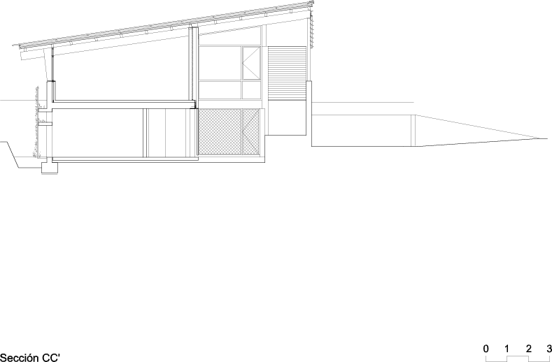 Se proponen cómo una construcción de planta baja y planta semisótano que, en sección longitudinal, se encuentran “desplazadas”; adaptándose, así, a la orografía de la parcela. La edificación se presenta como un zócalo pesado, que incorporará vegetación en toda su superficie, sobre lo que se coloca una estructura ligera de pares y vigas que resuelve la cubierta, a un agua, de la planta baja. El sistema estructural modulado admite una serie de variaciones en planta que resuelven la distribución y que permitieron asumir modificaciones en el programa durante el desarrollo de la obra. Al norte presenta una fachada continua y acristalada aprovechando la luz uniforme y abriéndose a las vistas en las zonas de trabajo. Al sur, dentro de los límites marcados por la estructura del edificio, se disponen una serie de zonas exteriores a cubierto que permiten controlar el soleamiento, resuelven la comunicación vertical y sirven como espacios intermedios que favorecen la continuidad con el contorno inmediato.